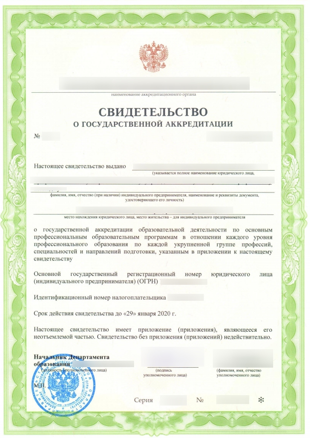 Информация о наличии государственной аккредитации образовательной деятельности по реализуемым образовательным программам